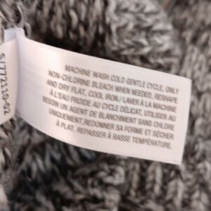 Short sleeves and wrap front. Marled gray. Kimono sleeves. Tie at the waist. Size M measures 58 at chest, 40 at waist, 46 at bottom hem. 28 long from shoulder to hem. A closet staple.