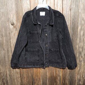 Old Navy XL Denim Chore Jean Jacket Black Acid Wash Women's Pockets Cotton