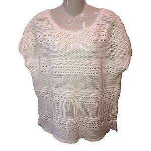 Old Navy XL Short Sleeve White Monochromatic Stripe Casual Open Knit Sweater