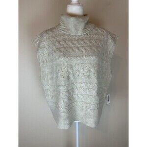 Old Navy XL Sweater Vest Top Cable Knit Oatmeal Beige Turtleneck Subtle Luxury