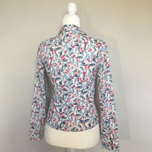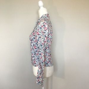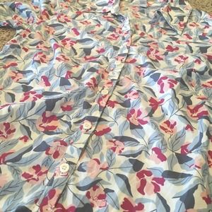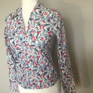 Old Navy X-Small Button Up Blouse Blue White Pink Floral Long Sleeve Career Top