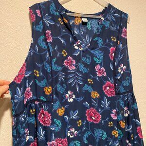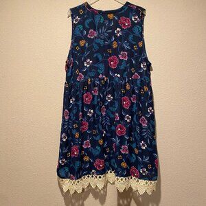 Old Navy XXL Blue Floral Midi Summer Dress Boho Cottagecore Lace Trim