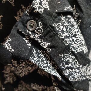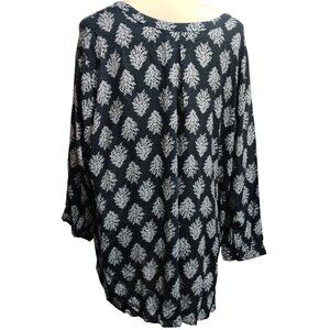 Old Navy XXL Plus Size Black White Floral Tunic Blouse Long Sleeve Boho Top Chic