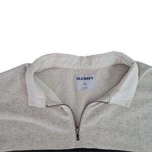 Old Navy Sz XXL Rugby Stripe Heathered Grey & Navy Half-Zip Sweatshirt Vintage Inspired Preppy
