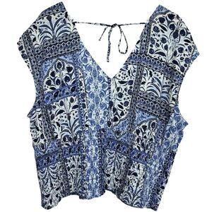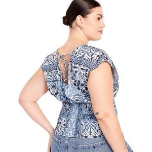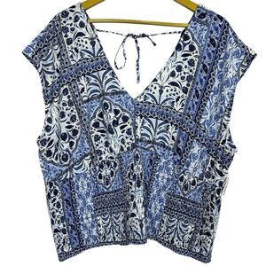 Old Navy Waist Defined Smocked V-Neck Top Blue Patchwork Print Size XXL / 2XL