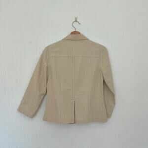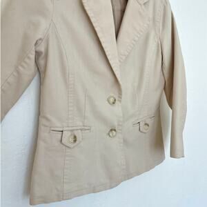 y2k cropped blazer, cream neutral jacket, vintage old navy blazer, 2000s preppy chic, single-breasted blazer, light academia fashion, quiet luxury layering, neutral capsule closet, everyday workwear blazer, structured cotton jacket, minimalist y2k outfit