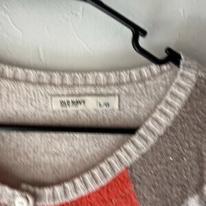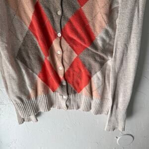 Old Navy Y2k Size Large Beige Orange Argyle Diamond Button Academia Sweater