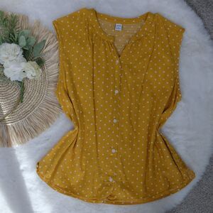 Old Navy Yellow Dot Button Front Sleeveless Top Size Medium