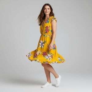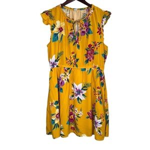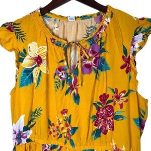 Old Navy Yellow Floral Midi Dress Sz XL Short Flutter Sleeve Casual Boho Flowy
