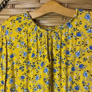 Old Navy Yellow and Blue Long Sleeve Sundress XL ditsy print autumn modest