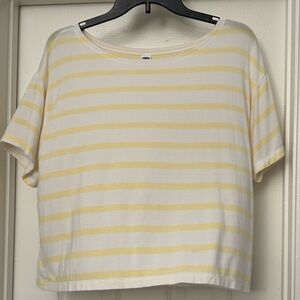 Casual yellow and white striped t-shirt. Perfect for everyday wear.