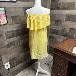 Old Navy Yellow/white gingham On/Off-Shoulder sundress size small