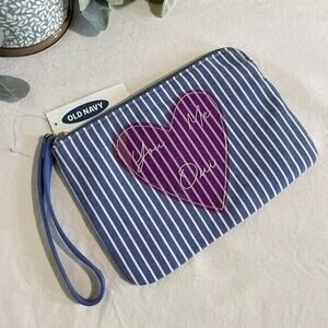Old Navy Zipper Pouch Blue White Stripe with Heart