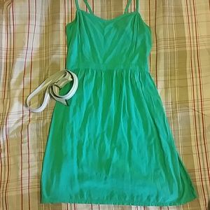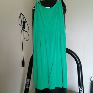 A beautiful green dress with a ribbed center. Soft.. 26" long, Comfortable fit. New condition