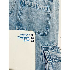Old Navy baggy jeans cargo pockets wide leg high rise built in tough blue women 12Jr New