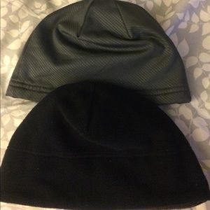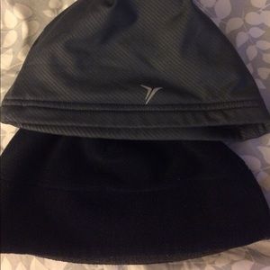 2 Old Navy beanies. Still in great condition only been used 3x. The blue one is a fleece beanie. And 100% polyester . The other grey and 88% polyester and 11% spandex