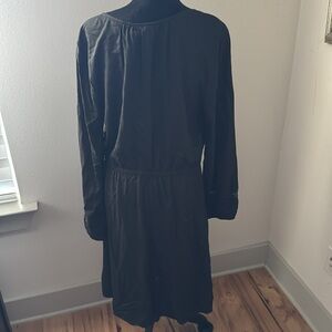 Old Navy black V long sleeves crochet detailing waist ties dress Sz L Tall new