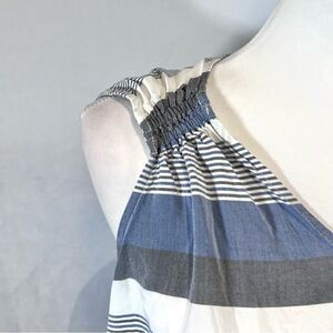 Old Navy blue gray and white stripe ruched sleeve top size small
