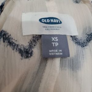 Old Navy boho swimsuit cover‎ up sheer white and blue pattern chevron size XS