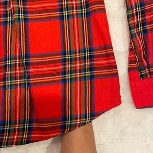 Women’s Plaid button down, one small tear on backside, lower right side. Otherwise, in excellent condition. Colors still vibrant. Pairs great with winter vest or sweater.