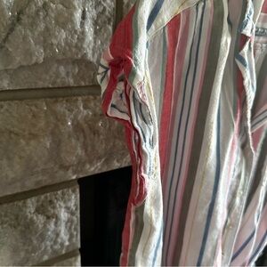 Super cute button down tie front top. In very good condition. There is some wrinkling and fading of the colors. No rips or stains.