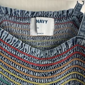 Old Navy chambray Denim Dress Rainbow Stitching Shirred