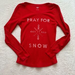 Old Navy cherry red long sleeve thermal ‘ Pray for Snow ‘ snowflake top size M