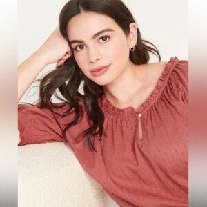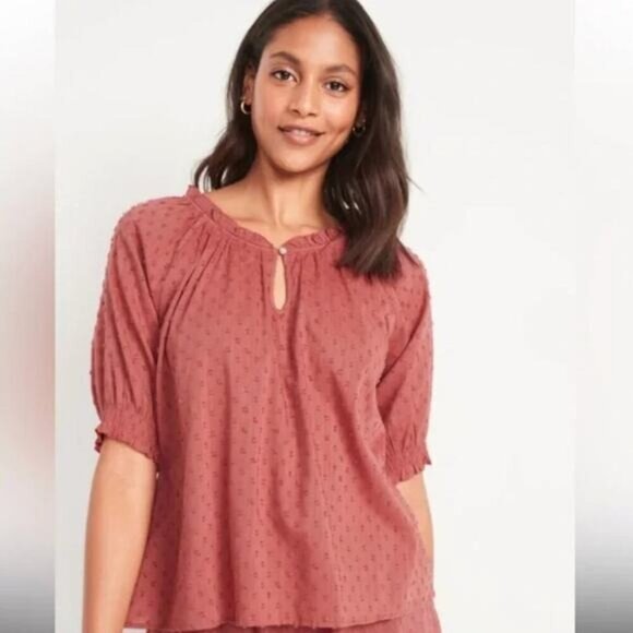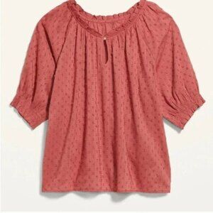 Old Navy clip-dot Top Women's Size 2X Smocked Sleeve Button Front Pullover Light