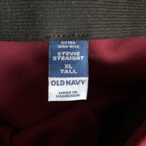 Old Navy presents these cranberry tailored trousers, perfect for professional settings. Crafted from a structured fabric, they offer a sleek, straight-leg silhouette that exudes sophistication. The deep red hue adds a touch of elegance, making them a versatile choice for dressy occasions. These stretch knit and inseam is 30 inches , they are marked XL tall