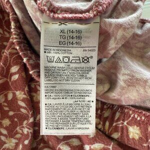 Women's Old Navy dusty rose and cream floral short sleeve pullover crop top, XL 14-16. This is stretchy, has non functional buttons down the front, elastic around the neckline, sleeves, and bottom hem. Machine washable. Excellent condition and from a smoke free pet free home. Quick shipper!