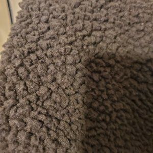 Charcoal and pink sherpa feel fleece pullover womens size medium.