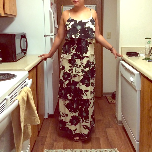 Lightweight, lined, maxi dress with adjustable straps. Worn twice for company dinner and thanksgiving. Very easy to dress up and very comfortable.