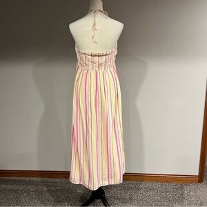 Key words : sleeveless dress, v-neck dress, dress, striped dress, a-line dress, spring color a-line tie up halter country summer festival picnic date night