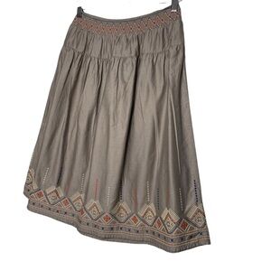 Old Navy khaki 100% COTTON boho spribg summer embroidered hem skirt. SZ-small