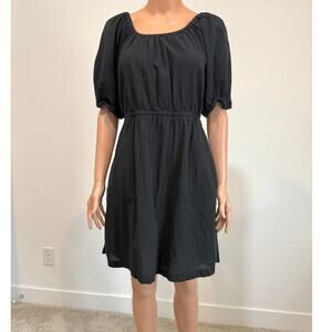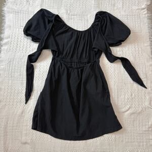 Old Navy large puff sleeve tie back bow cut out mini dress pockets D2 2689