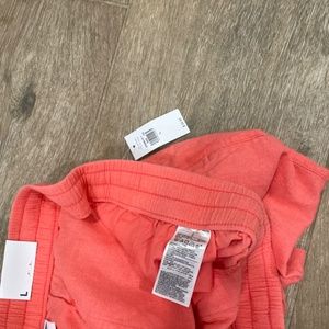 Old Navy linen shorts. Size L. Coral color. I think they look more pinky coral in person and less orange coral. Pull on elastic waist. Drawstring. Brand new, never worn, NWT. Non smoking house. I changed sizes and never had the chance to wear them and it’s too late to return them. I have two identical pairs of these so if you see two listings that’s why.