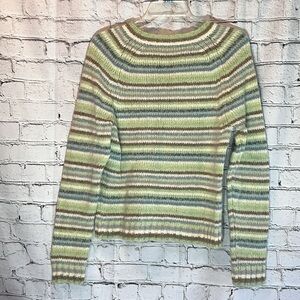 Old navy super cute, thick, warm, & snuggly wool blend knit sweater long sleeves split neck pastel stripes mint green, white, blue & gray. Vintage fitted (not oversized like todays sweaters)