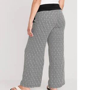 Old Navy maternity Foldover-Waist Playa Soft-Spun Wide-Leg Pants Tiled Green L