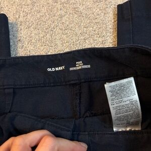 Old navy mid rise pixie pants size 4. They are navy blue colored. They have no known flaws and still have plenty of life and wear in them. I just can’t fit them.