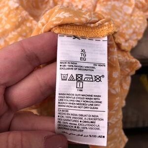 Old Navy mustard yellow floral hobo tunic peplum top puff 3/4 sleeves size XL in great condition/ has front tie detail / non stretchy