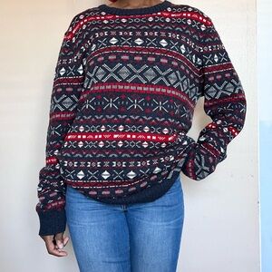 Old Navy navy fair isle Christmas patterned wool knit sweater