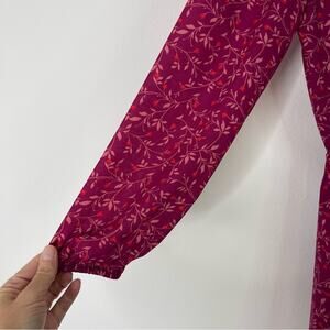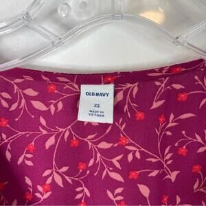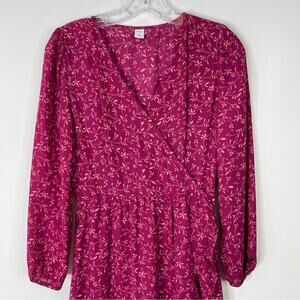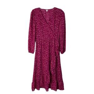 Old Navy pink red tan floral ruffle cottagecore chiffon faux wrap midi dress XS