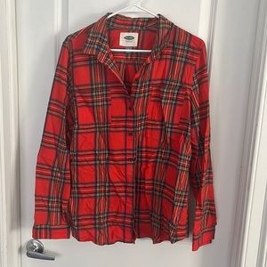 Cute plaid button down. Flannel looking but lighter and easily worn in a warmer temp. Vibrant, beautiful colors in the plaid.