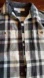 Old Navy plaid shirt thick long sleeve button down brown buttons curved hemline