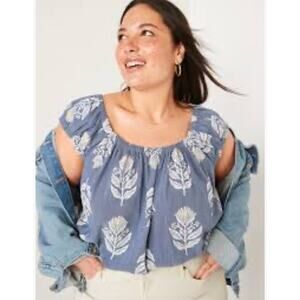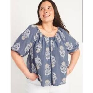 Old Navy puff sleeve printed cutout tie back swing blouse womens 4X cottagecore