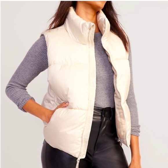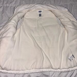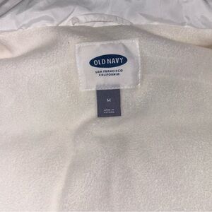 Old Navy puffer white vest fleece lined size Medium. excellent condition- maybe worn once. Fleece is soft and feels like new. Smoke free clean home.