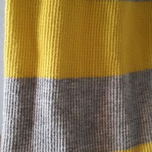 Yellow and Gray bold stripes with big logo on the front. Very comfortable waffle weave knit that is 100% cotton. Perfect for lounge wear/house wear/movie night!