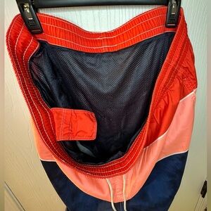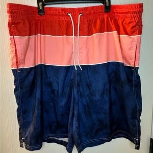 Old Navy red pink blue colorblock swim trunks men’s XXL pockets drawstring
