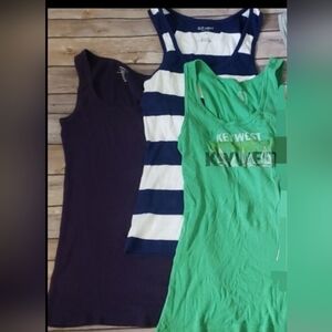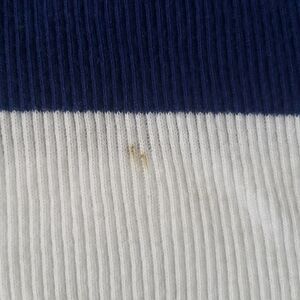 The purple and striped tags read 100% cotton. I can't read the other one.