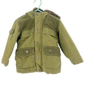 Old Navy sherpa-lined hooded utility jacket corduroy accents parka green size 2T